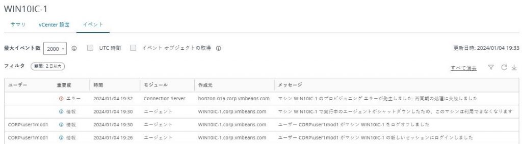 該当マシンのイベント上でもエラーとなったことが確認できます。