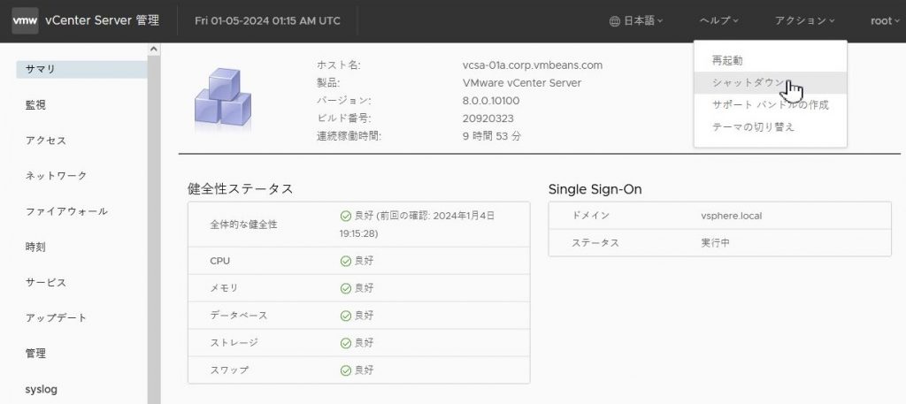 なお、vCSAがシャットダウン状態であるエビデンスとして、vCSAへのPingによるリーチャビリティがないことを確認しています。